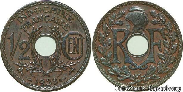 S595 French Indochina 1/2 Cent 1938 SUP -> Faire Offre