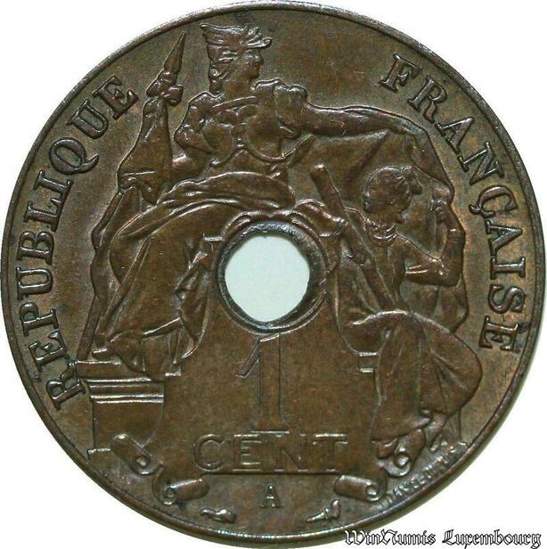 S596 French Indochina 1 Cent 1932 Copper ! Almost AU -> Make offer