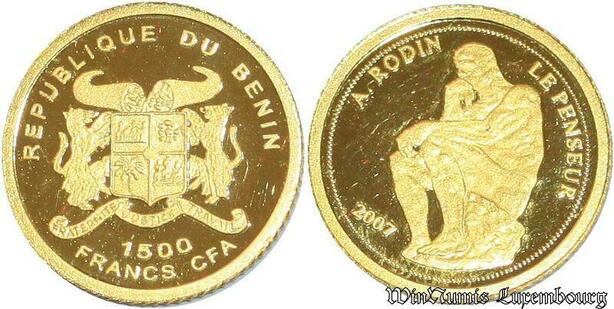S641 Benin 1500 Franc CFA Rodin Le Penseur 2007 Or Gold 999% PF BE Proof