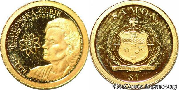 S646 Samoa 1 Dollar Marie Sklodowska Curie Or Gold 2009 999% PF BE Proof