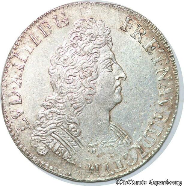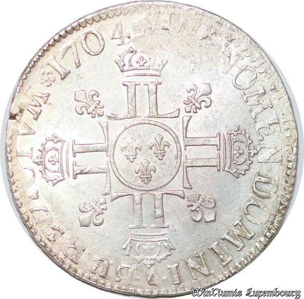 S655 France Rare Ecu Louis XIV 1643-1715 aux 8 L 1704 A Paris Argent Silver Superbe