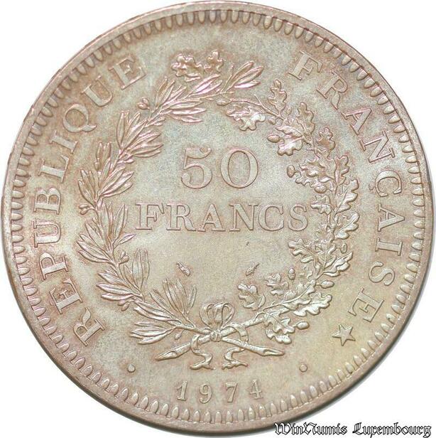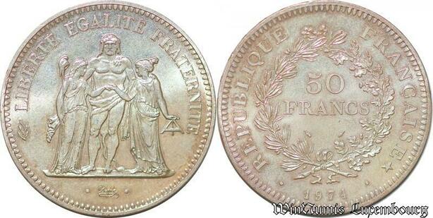 S660 France Rare 50 Francs Hercule Avers 20 Francs 1974 Argent Silver SUP +++
