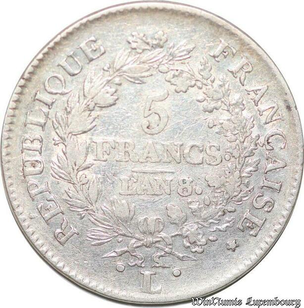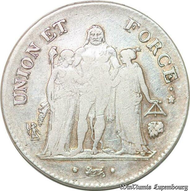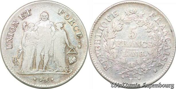 S672 France Très Rare 5 Francs Union & Force an 8/6 L / Petit A Argent -> Faire Offre