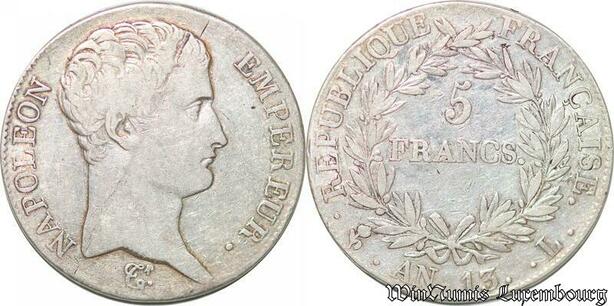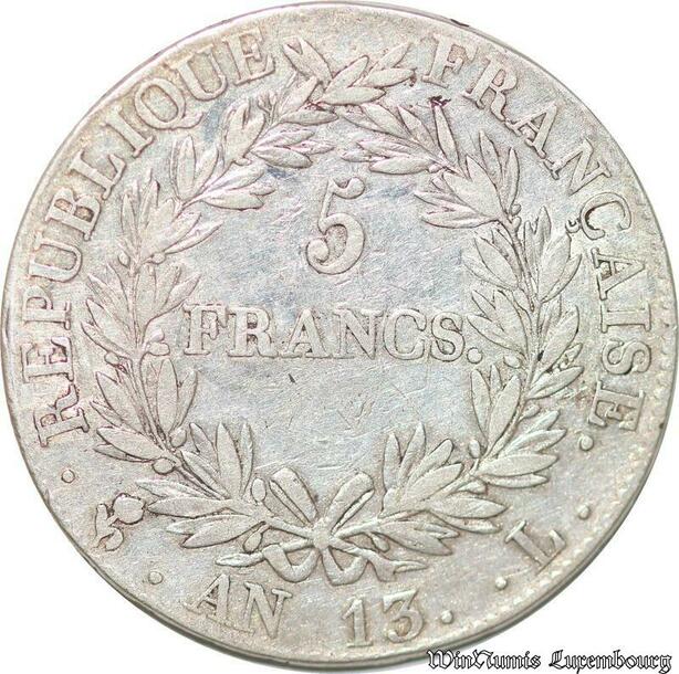 S674 France Rare 5 Francs Napoléon CalendrI Révo. An 13 L Bayonne Argent