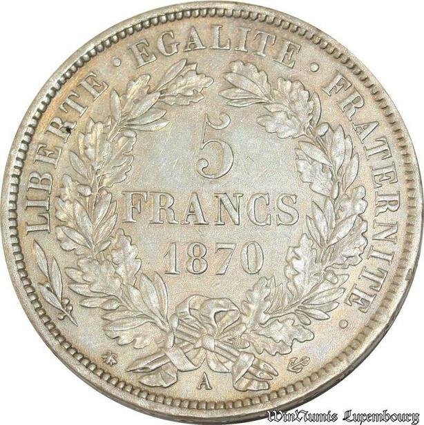 S685 France Rare 5 Francs Ceres avec légende 1870 A Paris Superbe -> Faire Offre