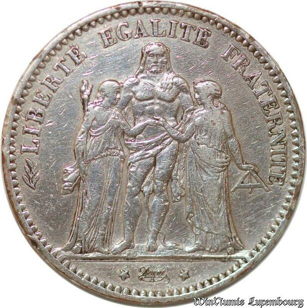 S690 France 5 Francs Hercule 1874 A Paris Argent Silver -> Faire Offre