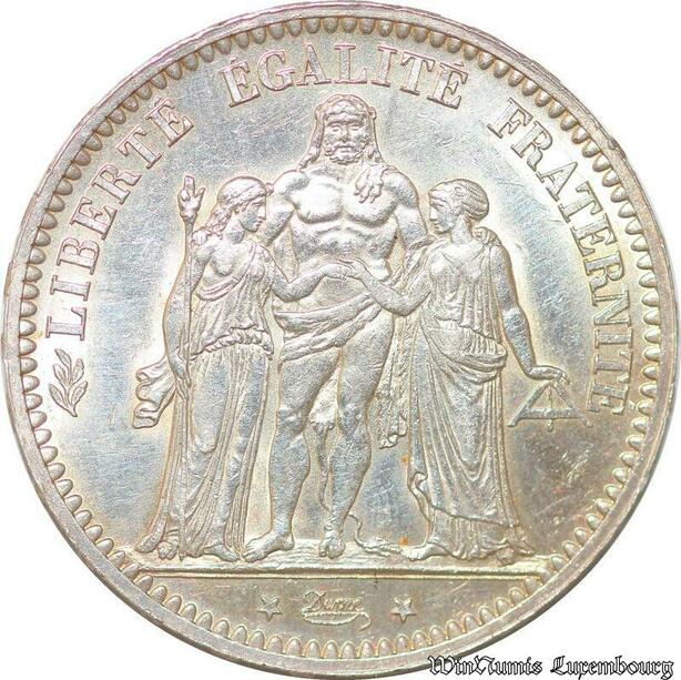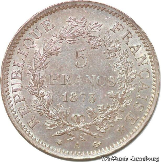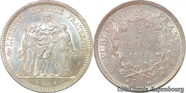 S691 France 5 Francs Hercule 1873 A Paris Argent Splendide FDC ! -> Faire Offre