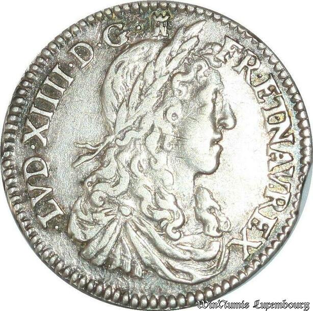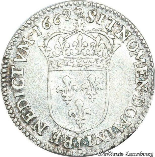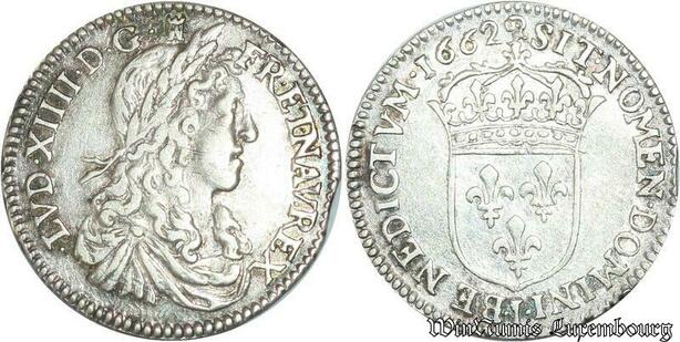 S696 France Rare 1/12 Ecu Louis XIV buste Juvénile 1662 I Limoges Argent Silver SUP