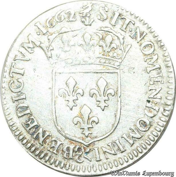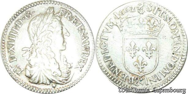 S698 France Rare 1/12 Ecu Louis XIV buste Juvénile 1662 & Aix Silver Quasi SUP