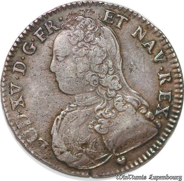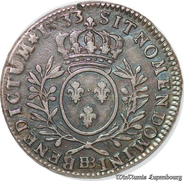 S706 France Très Rare R4 ! 1/2 Ecu aux lunettes Louis XV 1733 BB Strasbourg Argent