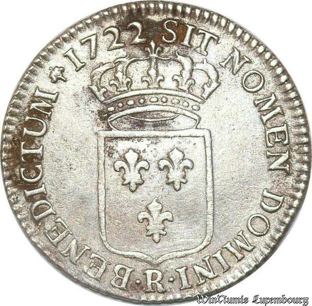 S708 France Louis XV 1/3 écu de France Louis XV 1722 R Orléans Argent TTB ++