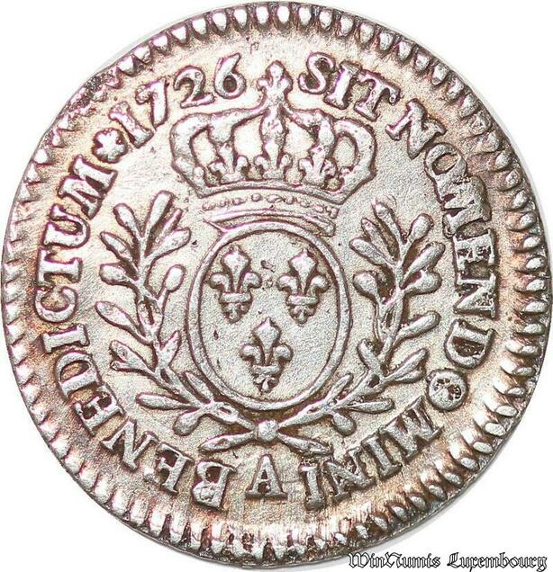 S712 France Rare ! 1/20 Ecu branche olivIs Louis XV 1726 A Paris Quasi SUP