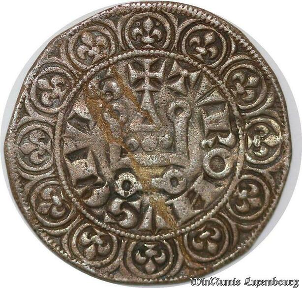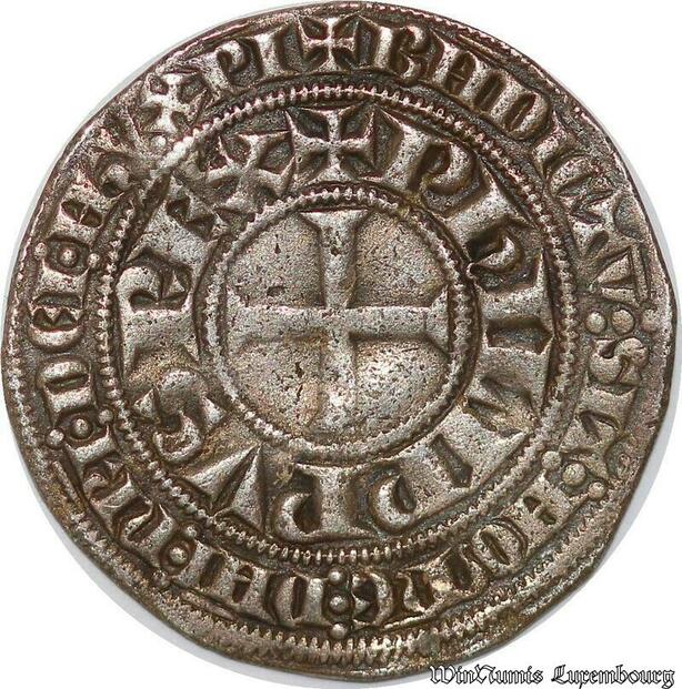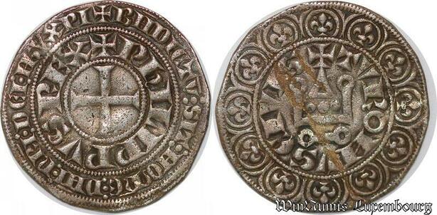 S725 France Rare R2 Gros Tournois Philippe III Philippe IV à l'O rond 1305 Argent