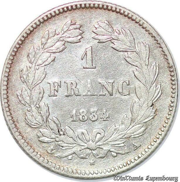 S763 France Rare 1 Franc Louis-Philippe 1834 A Paris Argent Silver -> Faire Offre