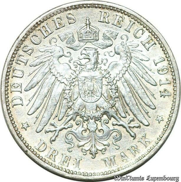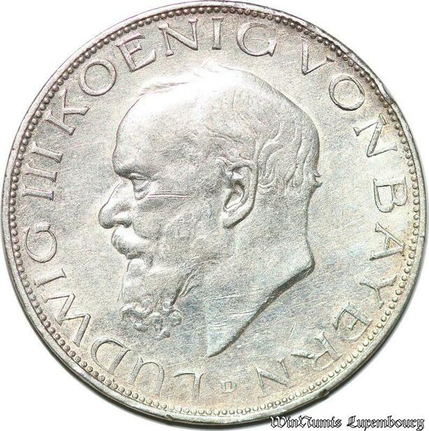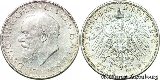 S782 Germany Bayern 3 Mark Ludwig III 1914 D Argent Silver AU -> Make offer
