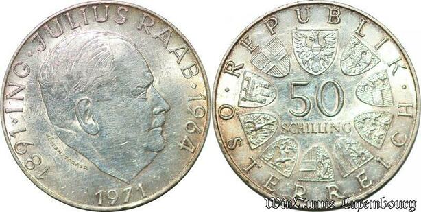S792 Austria 50 Shilling 1971 Ing Julius Raab Silver SUP Silver -> Make offer