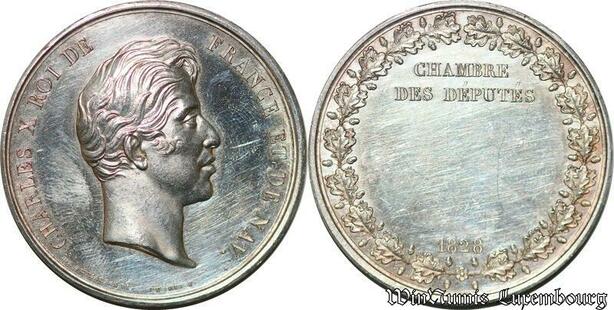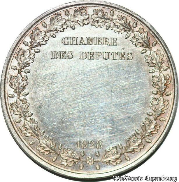 S918 France Médaille Charles X De Puymaurin Chambre des Députés 1828 Argent Silver