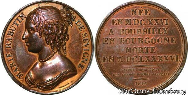S934 France Medal Marie Rabutin de Sevigné Gayrard Bourbilly Bourgogne 1816