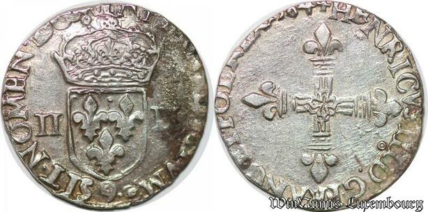 S939 France 1/4 Ecu Henri III 1584 9 Rennes Argent Silver->Faire Offre