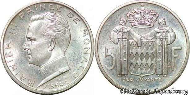 S980 Monaco 5 Francs Prince Rainier III 1960 Argent Silver -> Faire Offre