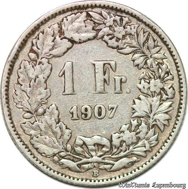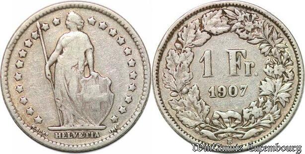 S990 Switzerland 1 Franc Helvetia 1907 Berne Argent Silver -> Faire Offre