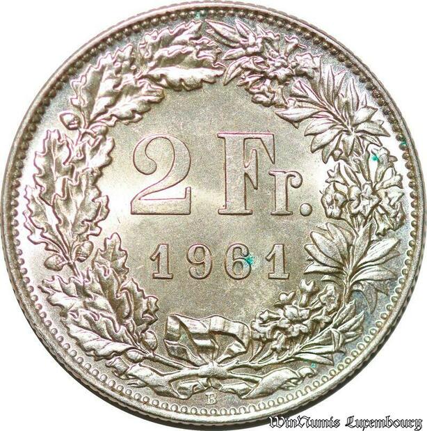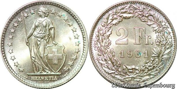 S993 Switzerland 2 Francs Helvetia 1961 Argent Silver -> Faire Offre