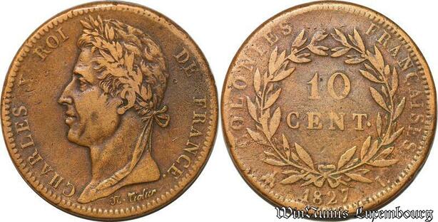 S1033 Colonies Martinique 10 Centimes Charles X 1827 H La Rochelle -> Faire Offre