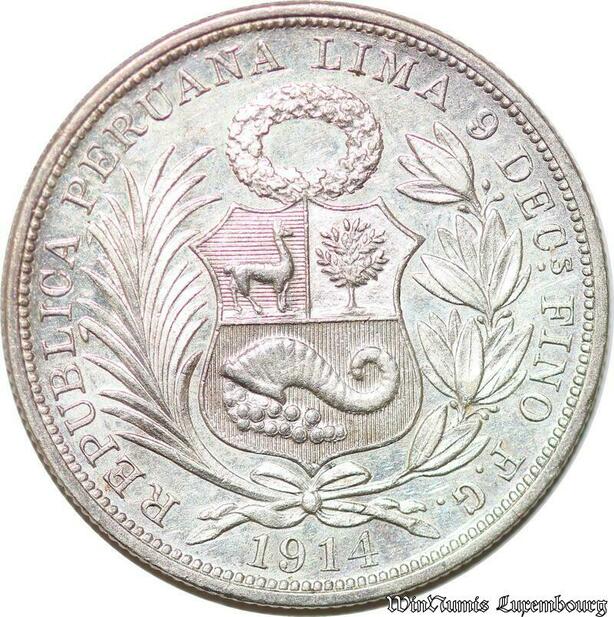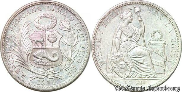 S1050 Peru 1/2 Sol Seated liberty 1914 Argent Silver AU -> Make offer