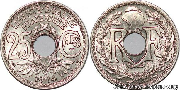 S1074 France 25 Centimes Lindauer 1914 Souligné