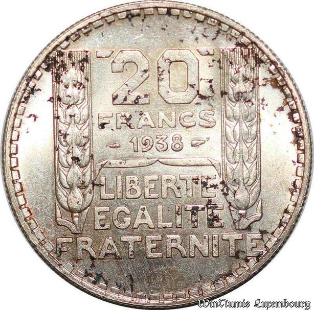 S1079 France 20 Francs Turin 1938 FDC Fleur de Coin -> Faire Offre