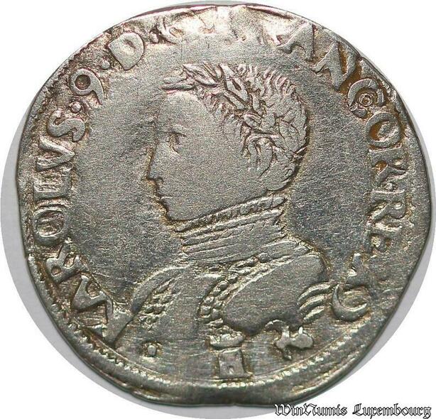 S1108 France Très Rare Teston Charles IX 4ème type 1567 L Bayonne Argent