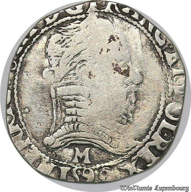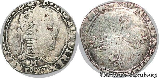 S1115 France Rare Demi Franc au col plat Henri III sous la Ligue 1590 M Toulouse Argent
