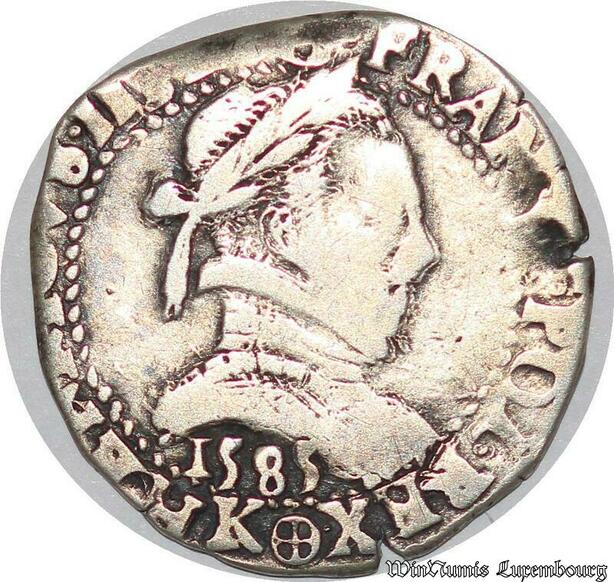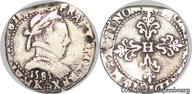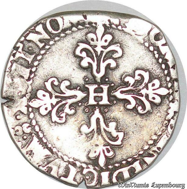 S1116 France Rare R2 Demi Franc au col plat Henri III 1585 K Bordeaux Argent