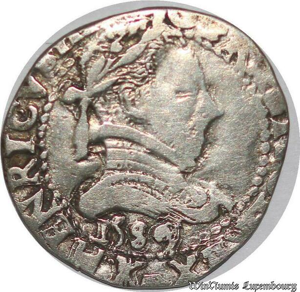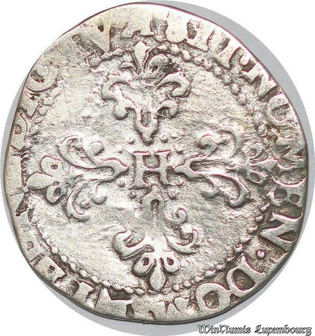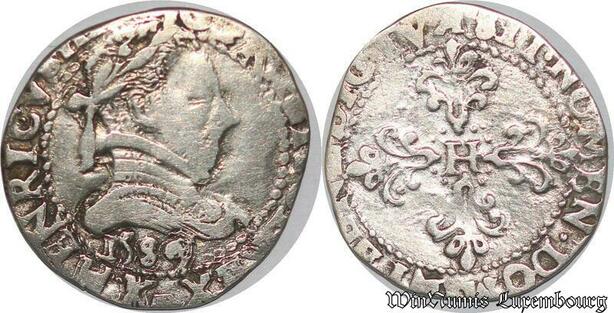 S1117 France Rare Demi Franc au col plat Henri III 1589 K Bordeaux Argent