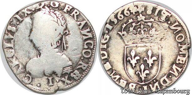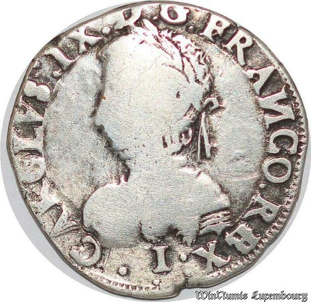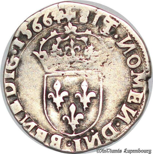 S1121 France Rarissime Fauté Teston Charles IX 5e type 1566 Limoges N Inversé Argent