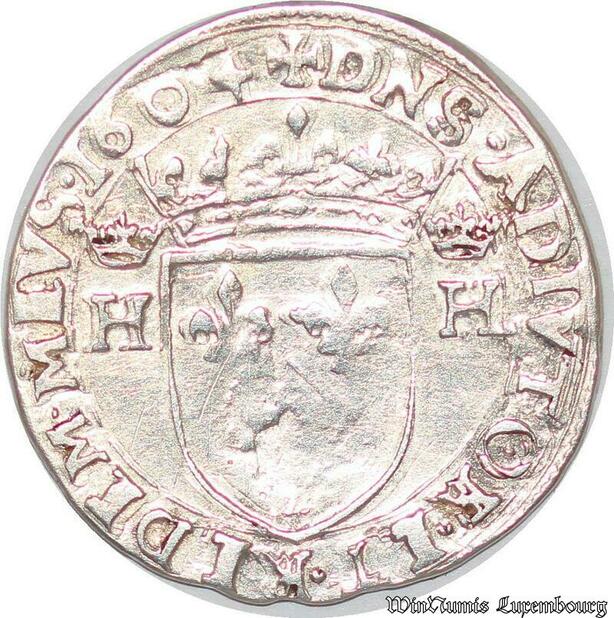 S1125 France Rare Dombes Teston Henri II de MontpensI 1604 Trévoux Argent