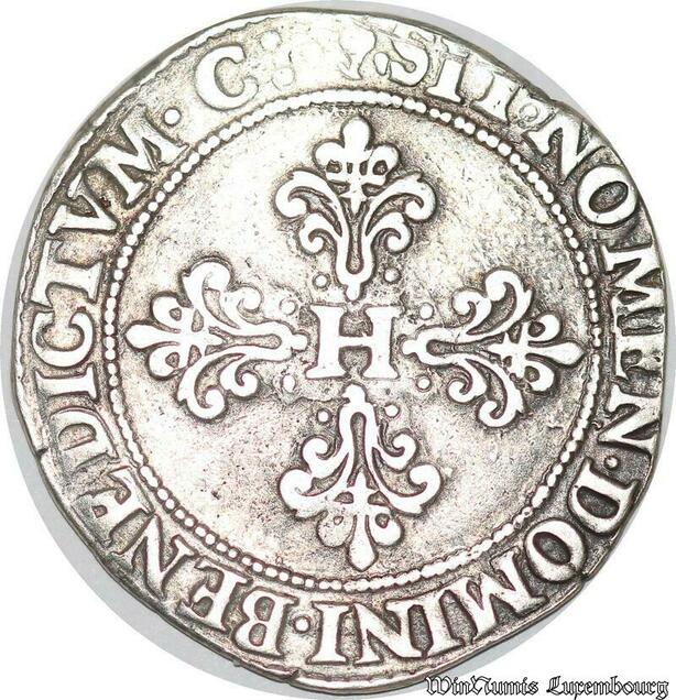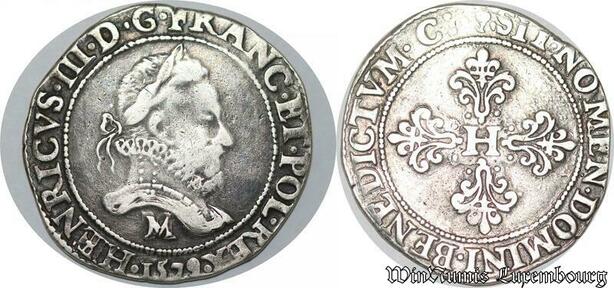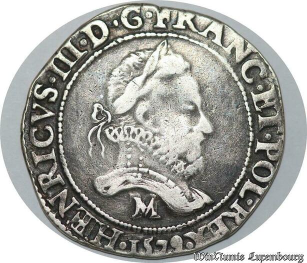 S1129 France Rare Franc au col fraisé Henri III 1579 M Toulouse Argent -> Faire Offre