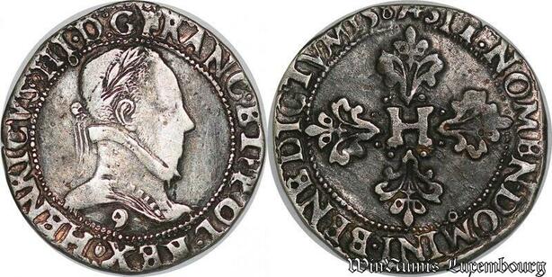 S1130 France Rare Demi-Franc au col plat Henri III 1587 9 Rennes Argent -> Faire Offre