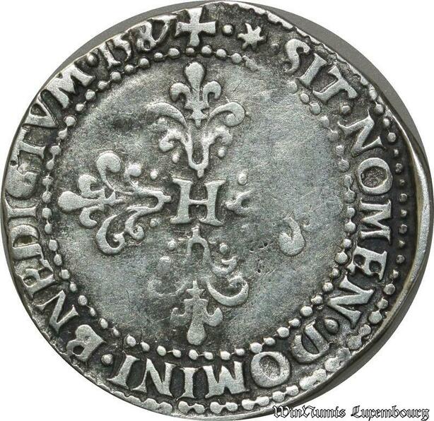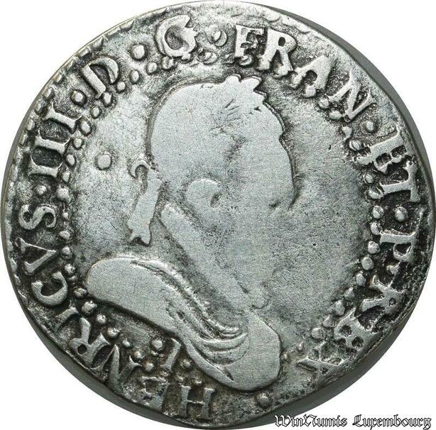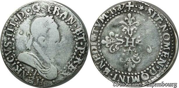 S1132 France Fauté Demi Franc col plat Henri III 1587 I Limoges Fr. Casquette Bnedictvm