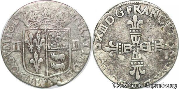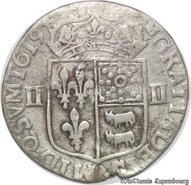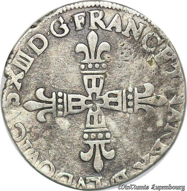 S1137 France Rare 1/4 d’Ecu Louis XIII Béarn Navarre Morlaàs 1619 M Silver
