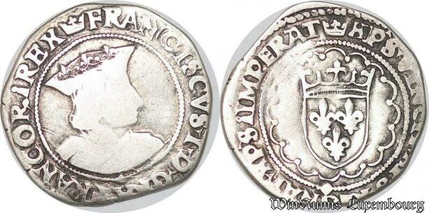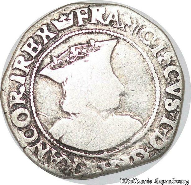 S1142 France Rare Demi Teston François I 3e type n.d. Rouen Argent Silver