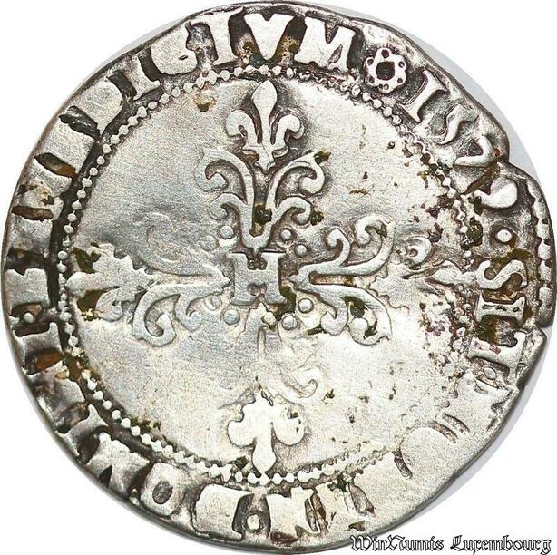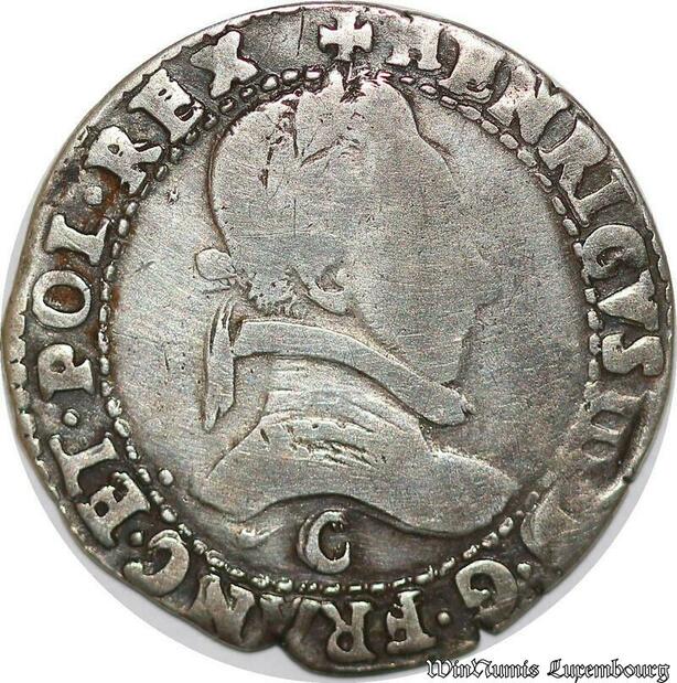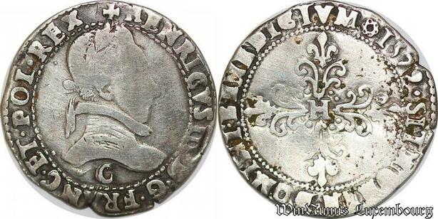 S1152 France Rare Demi-Franc au col plat Henri III 1579 C Saint-Lô Argent Silver