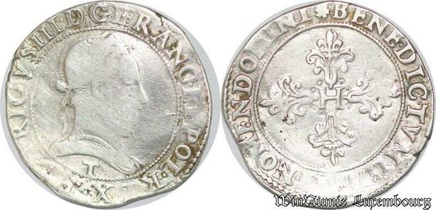 S1162 France Rare Franc au col plat Henri III 1578 T Nantes Argent Silver