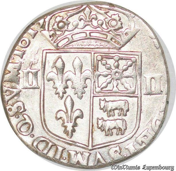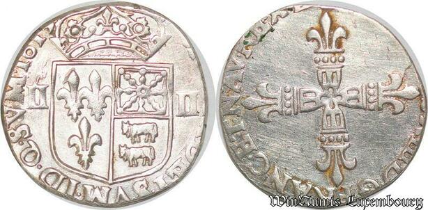 S1164 France Rare 1/4 d’Ecu Louis XIII Béarn Navarre Morlaàs 1613 M Argent