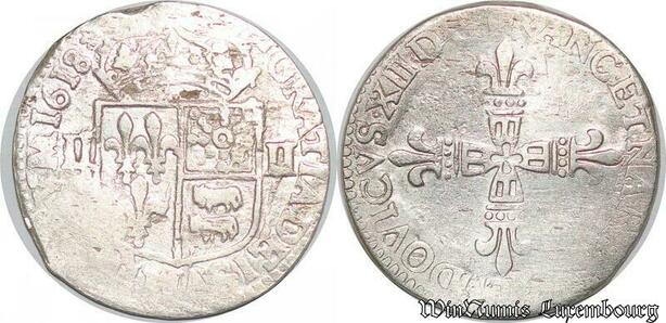 S1166 France Rare 1/4 d’Ecu Henri IV Louis XIII 1618 Argent