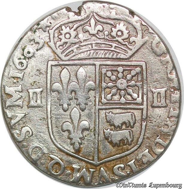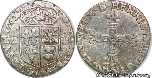 S1168 France Rare 1/4 d’Ecu Henri IV Béarn Navarre Morlaàs 1603 Argent Silver -