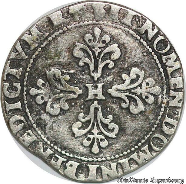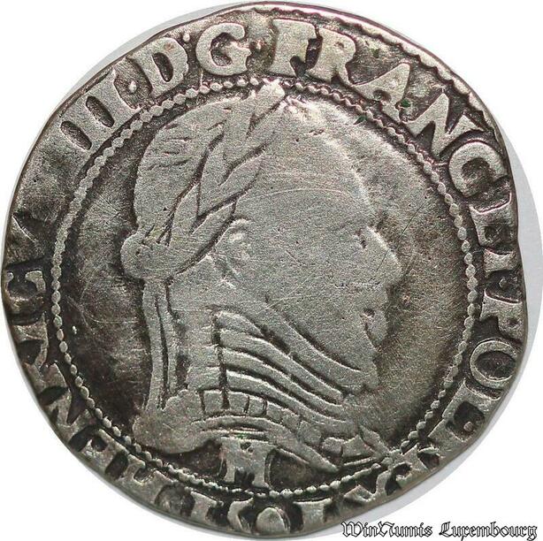 S1172 France Rare Demi Franc Henri III sous la Ligue col plat 1590 M Toulouse Argent