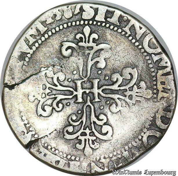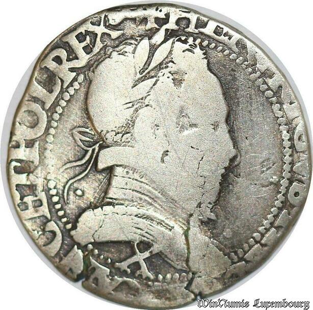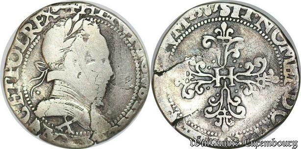 S1177 Rare Rare Demi Franc Henri III au col plat 1587 X Amiens Pologne Argent