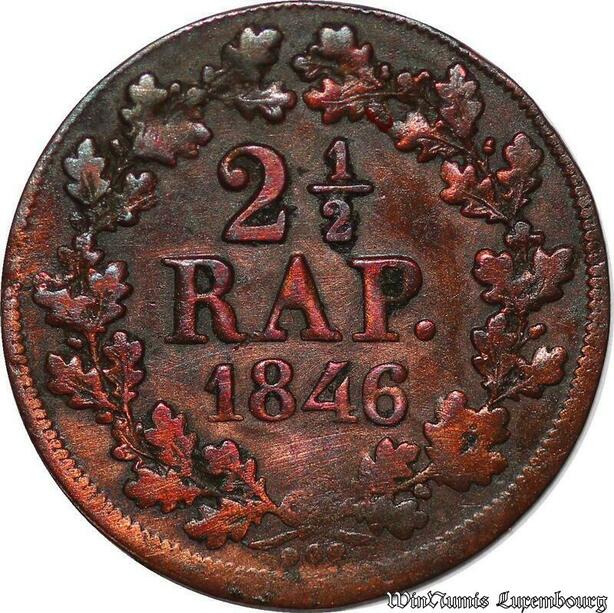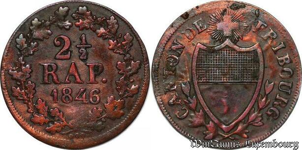 S1606 Swiss Switzerland Freiburg Fribourg Canton 2 1/2 Rappen Kreuzer 1846