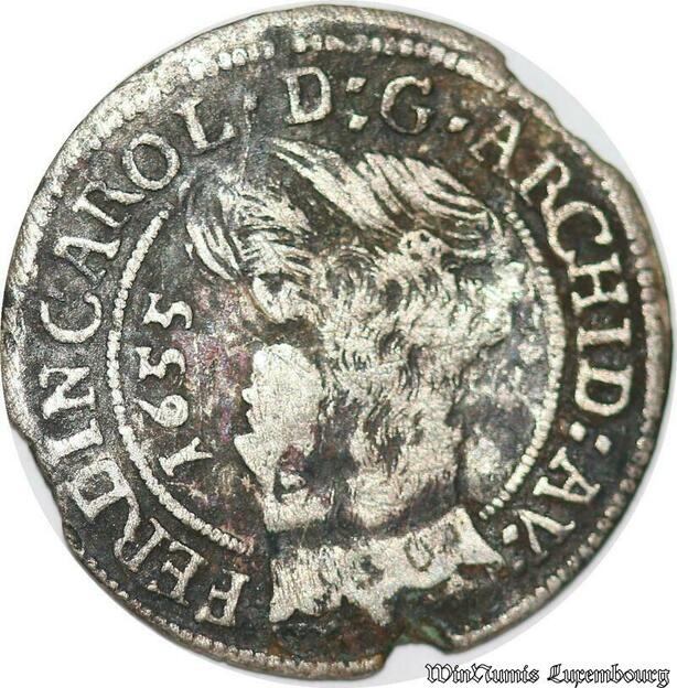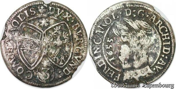 S1653 Austria 3 Kreuzer RDR Tirol Hall Ferdinand Carl 1632-1662 1655